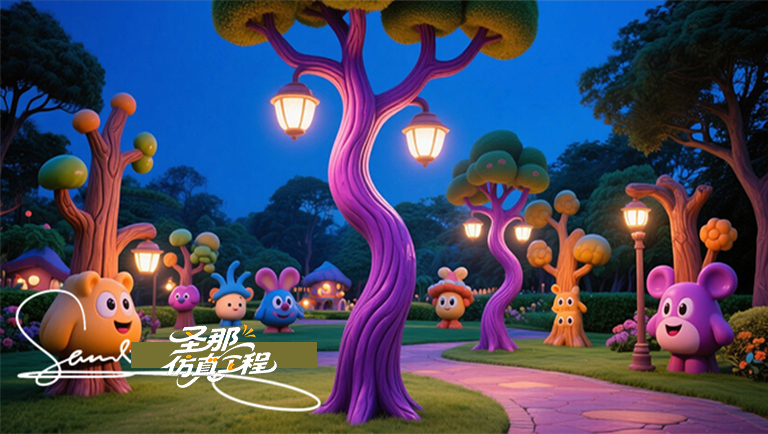 景觀包括:仿真假山水池、仿真樹群、水泥溶洞、水道等
